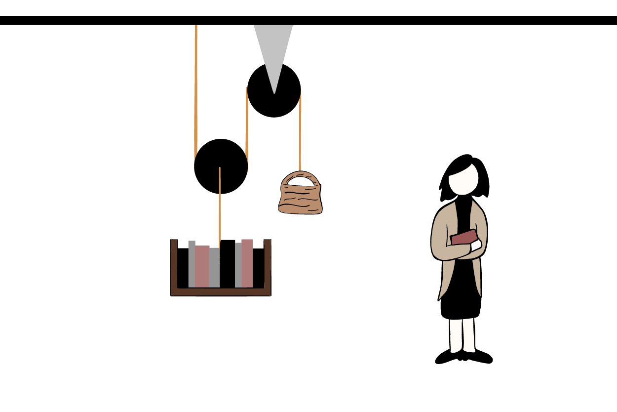 Find the amount of mass that Vivian has to add to the basket such that the library could be static or move at a constant speed.